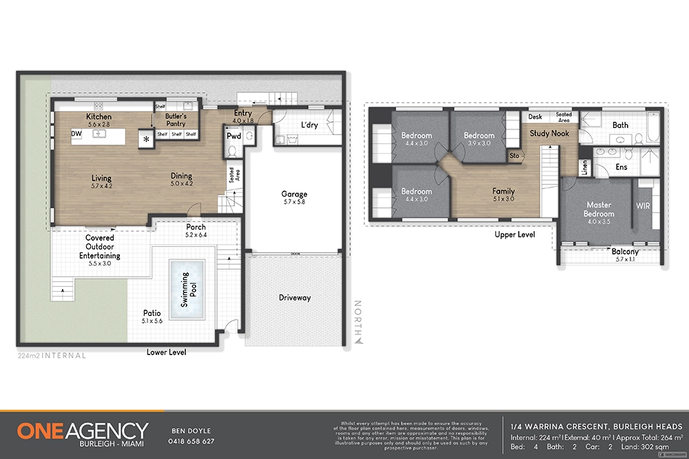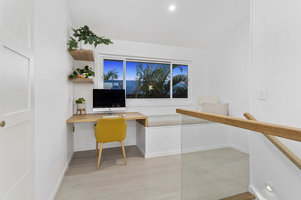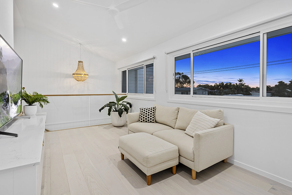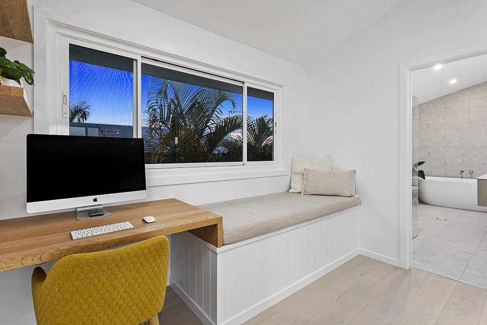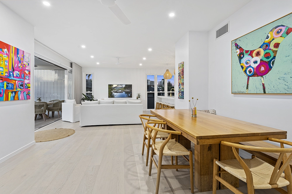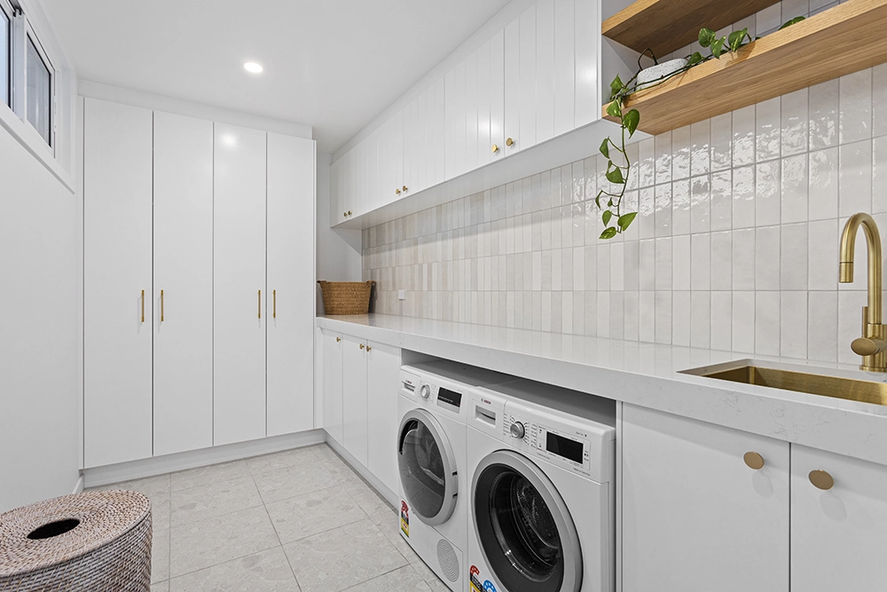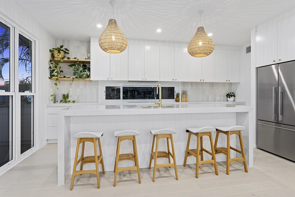 The Burleigh Duplex, located in serene Burleigh Waters, blends modern luxury with laid-back elegance. Designed by Studio 72, it features seamless indoor-outdoor living, a pool and BBQ area perfect for entertaining, and an open-plan living space that flows into a well-appointed kitchen with a butler’s pantry. The luxurious master suite offers a private retreat, while additional bedrooms and a games room provide ample family space. The Burleigh Duplex embodies coastal living at its finest.