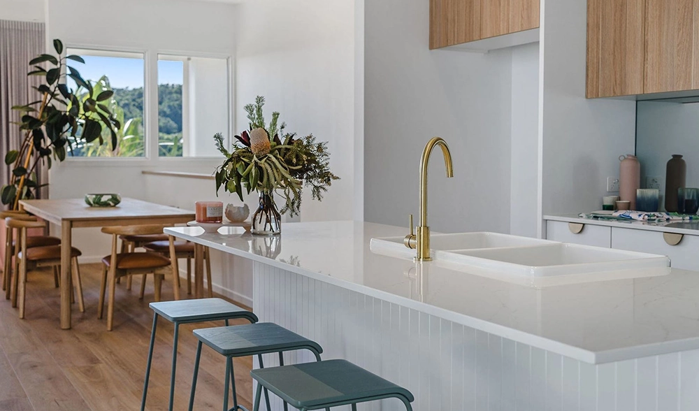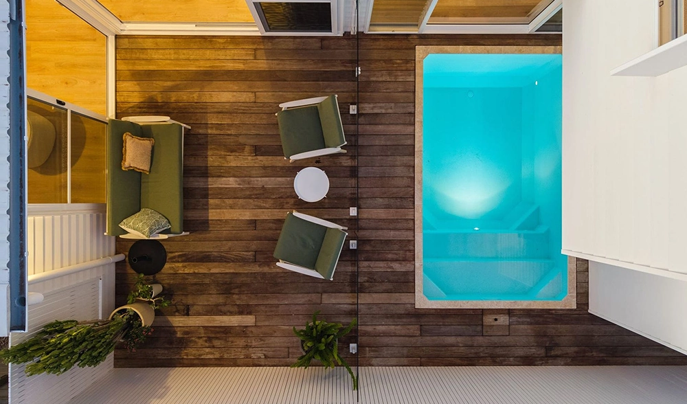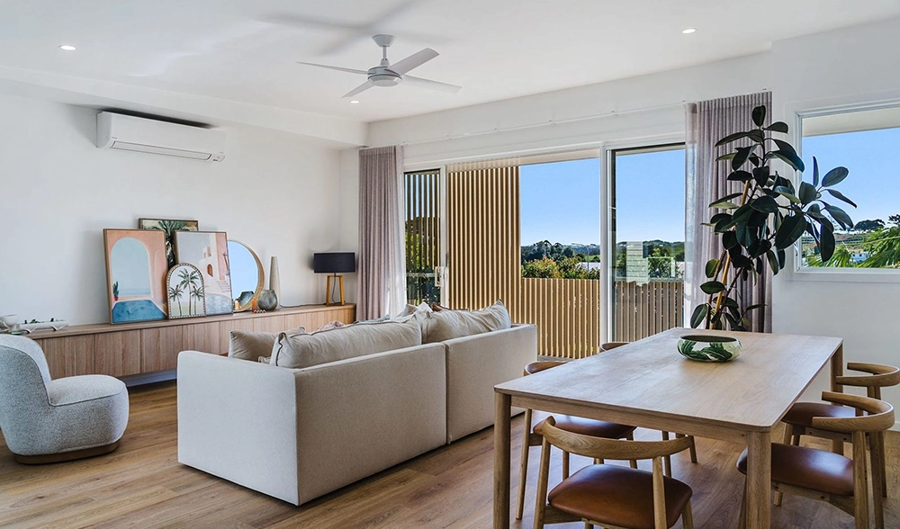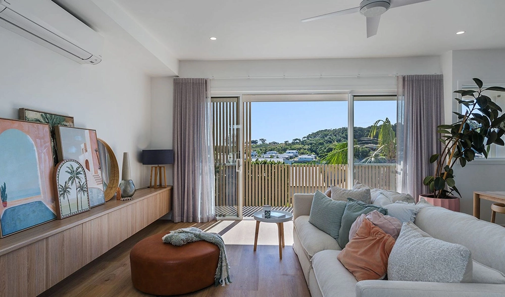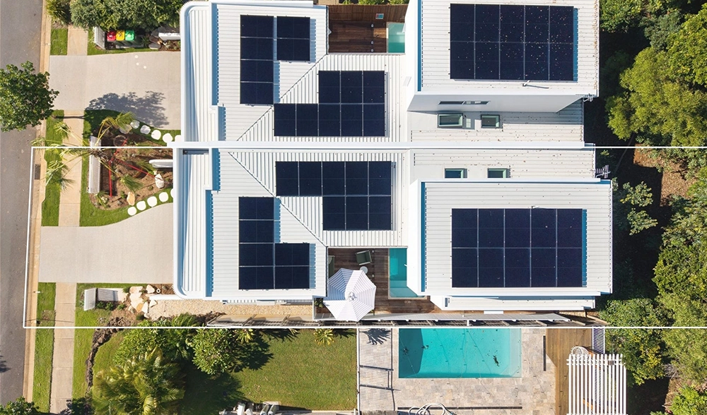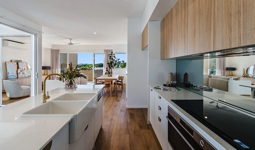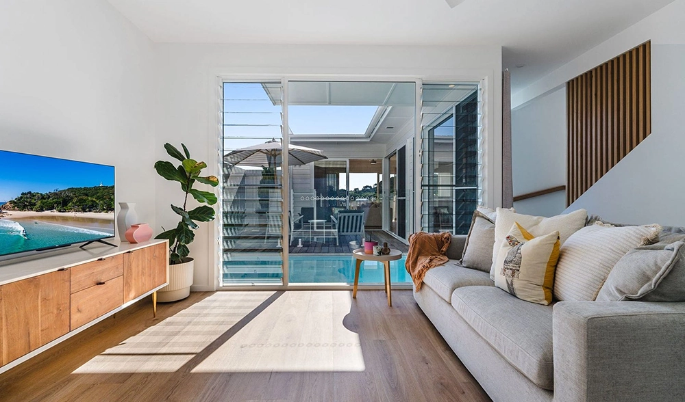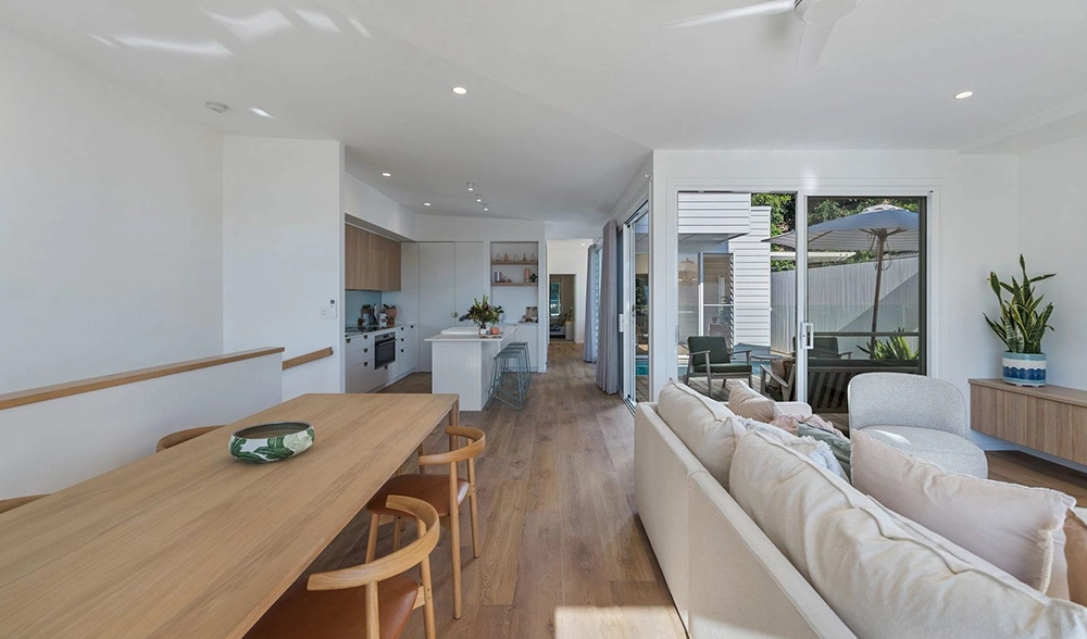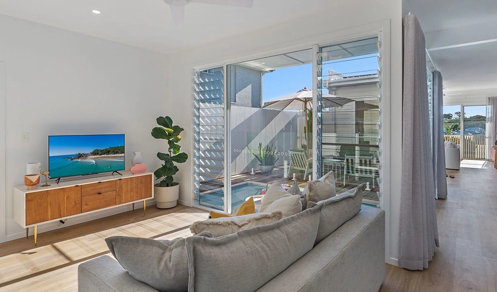 The site presented challenges with a dual slope, both front-to-back and side-to-side. Due to the proximity of surrounding homes, Studio 72 incorporated a plunge pool into the central courtyard of each unit. The design embraces a coastal style, harmonising with the surrounding environment. The image to the right is the type of 3D image and model produced at each stage.